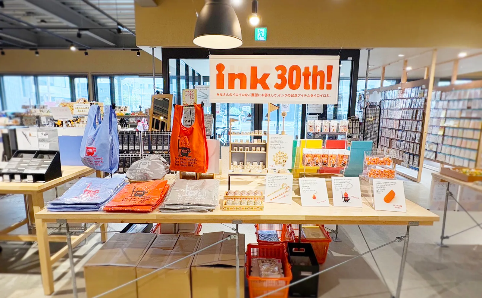 企業や店舗の周年イベントでは、記念品とも言えるノベルティグッズや、アニバーサリーグッズが欠かせません。 今回は、株式会社インク様(以下インク様)の創立30周年記念企画に合わせて、コットン6オンスのレジ袋型エコバッグをご製作いただきました。 ご担当のインク 釜谷様にご協力いただき、実際に販売いただいたショッパー型エコバッグと、弊社をお選びいただいた決め手などを、30周年コーナーの様子とともにお届けします! 創立30周年記念アイテムで、2年前から検討していたエコバッグがついに形に! インク様は、2025年に30周年を迎えられました。創立30周年を記念して、文房具を中心に、特別な記念品となるような全