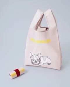 マチなしのエコバッグです。折りたためるように、ゴムやボタン、内ポケットをつけることも可能。底マチがないので、バッグの柄がきれいに見えます。