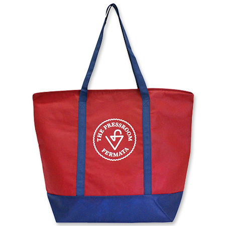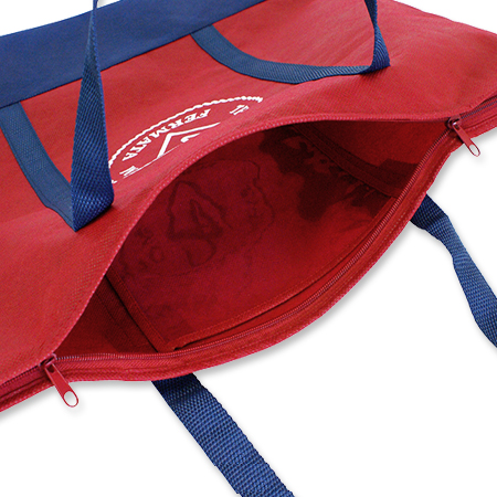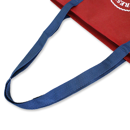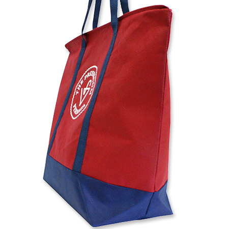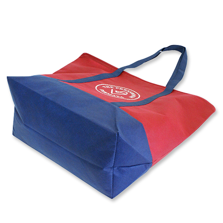 持ち手と底部分の生地を切り替えた不織布バッグの製作を承りました。フルオーダーメイドのため、生地の切り替えや、カラー展開やサイズ展開なども簡単にできます。