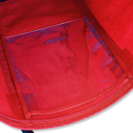 内ポケットは、ビニール素材でつけました。バッグ本体と同じ生地だけでなく、素材を変えることもできます。印刷はシルク印刷1色です。