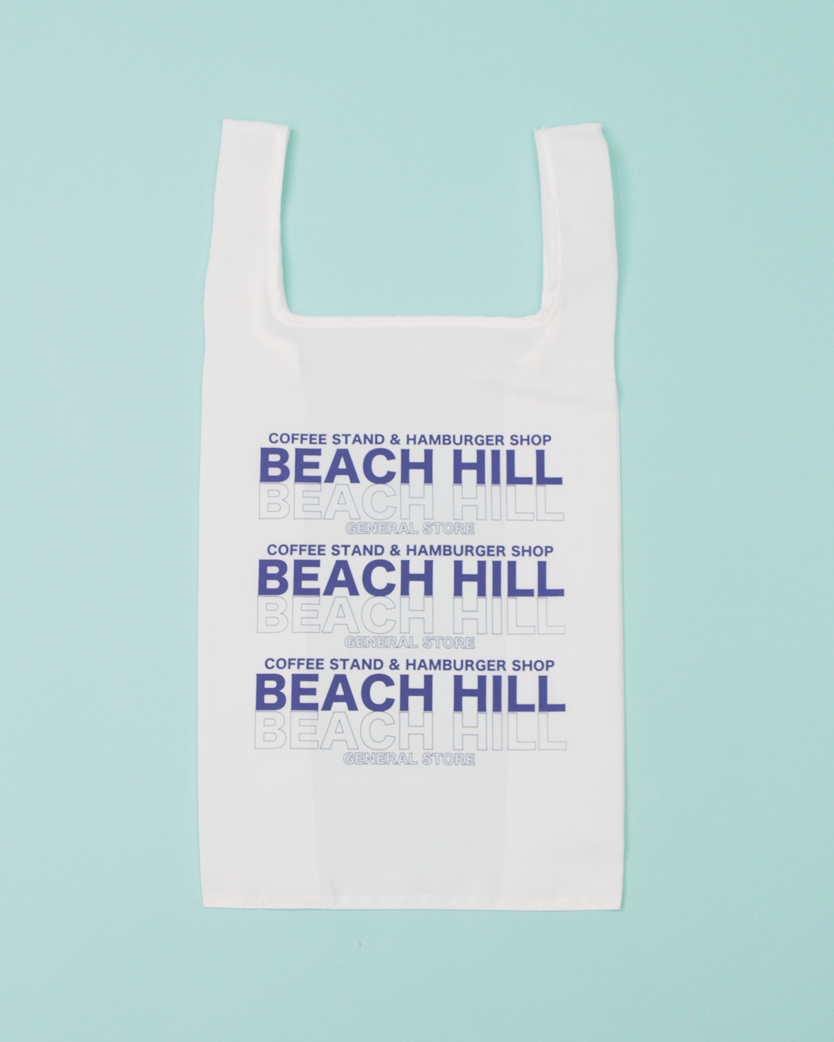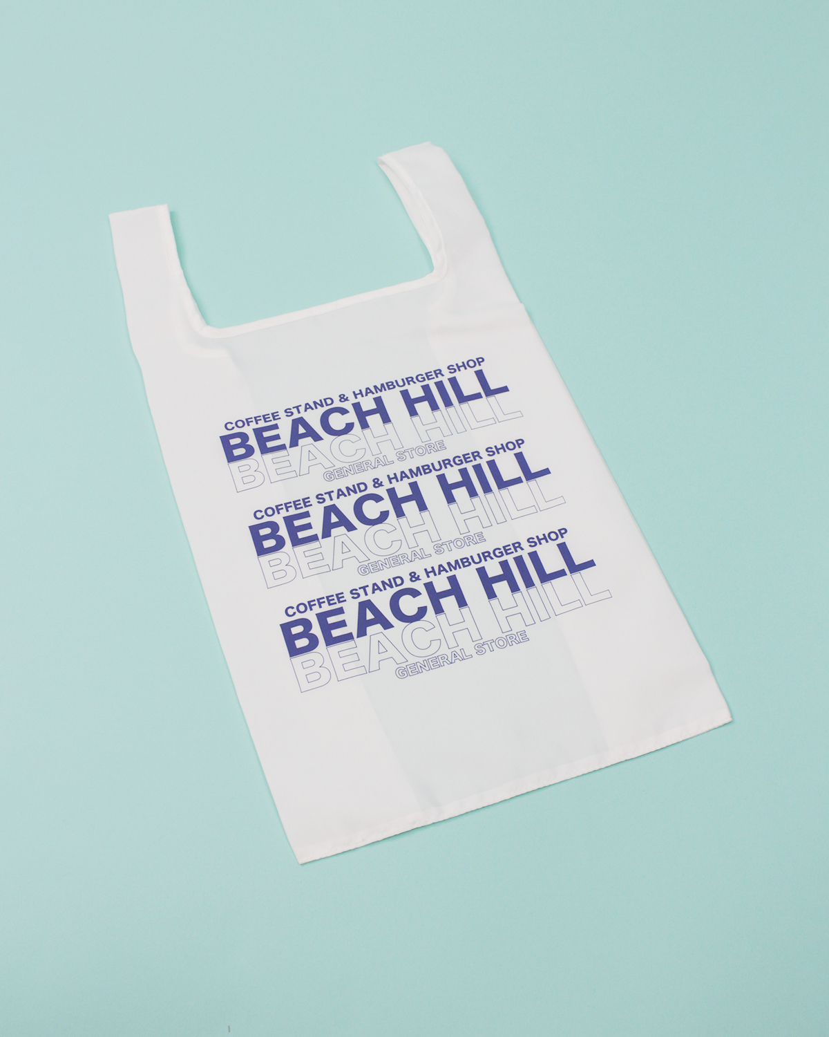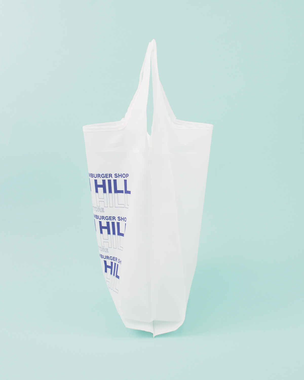 ハンバーガー屋さんのテイクアウト用エコバッグとして製作を承りました。白地のポリエステル210Dの薄手の生地を使用しました。
