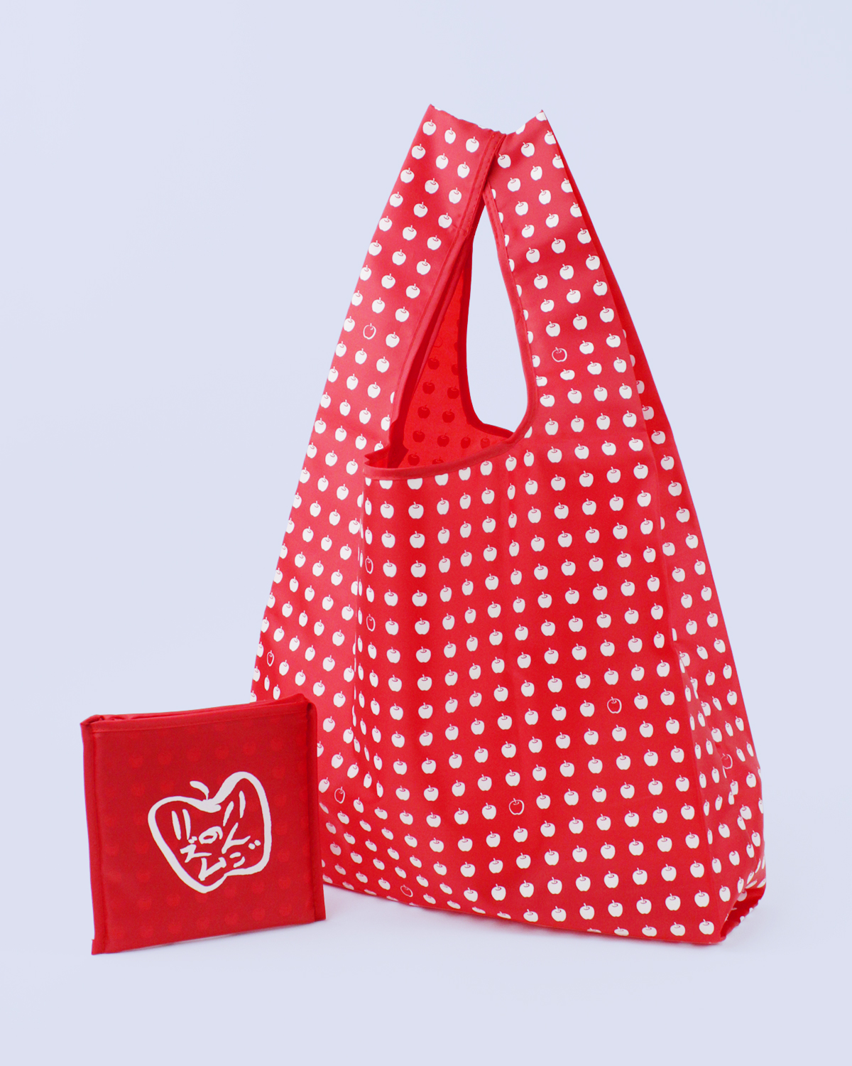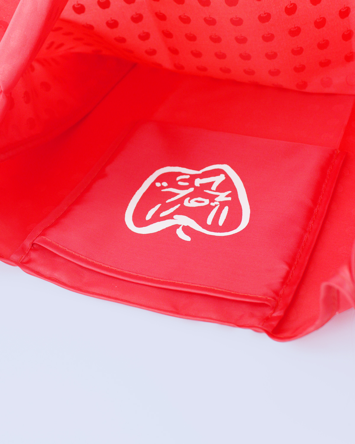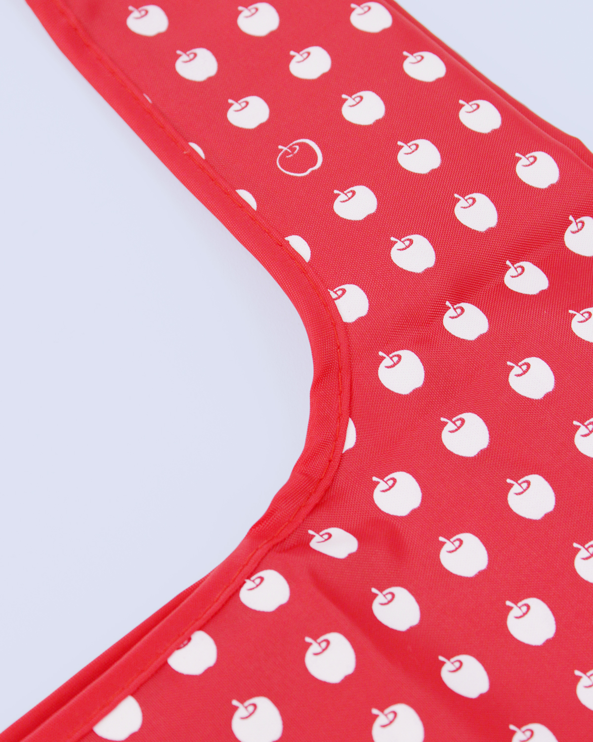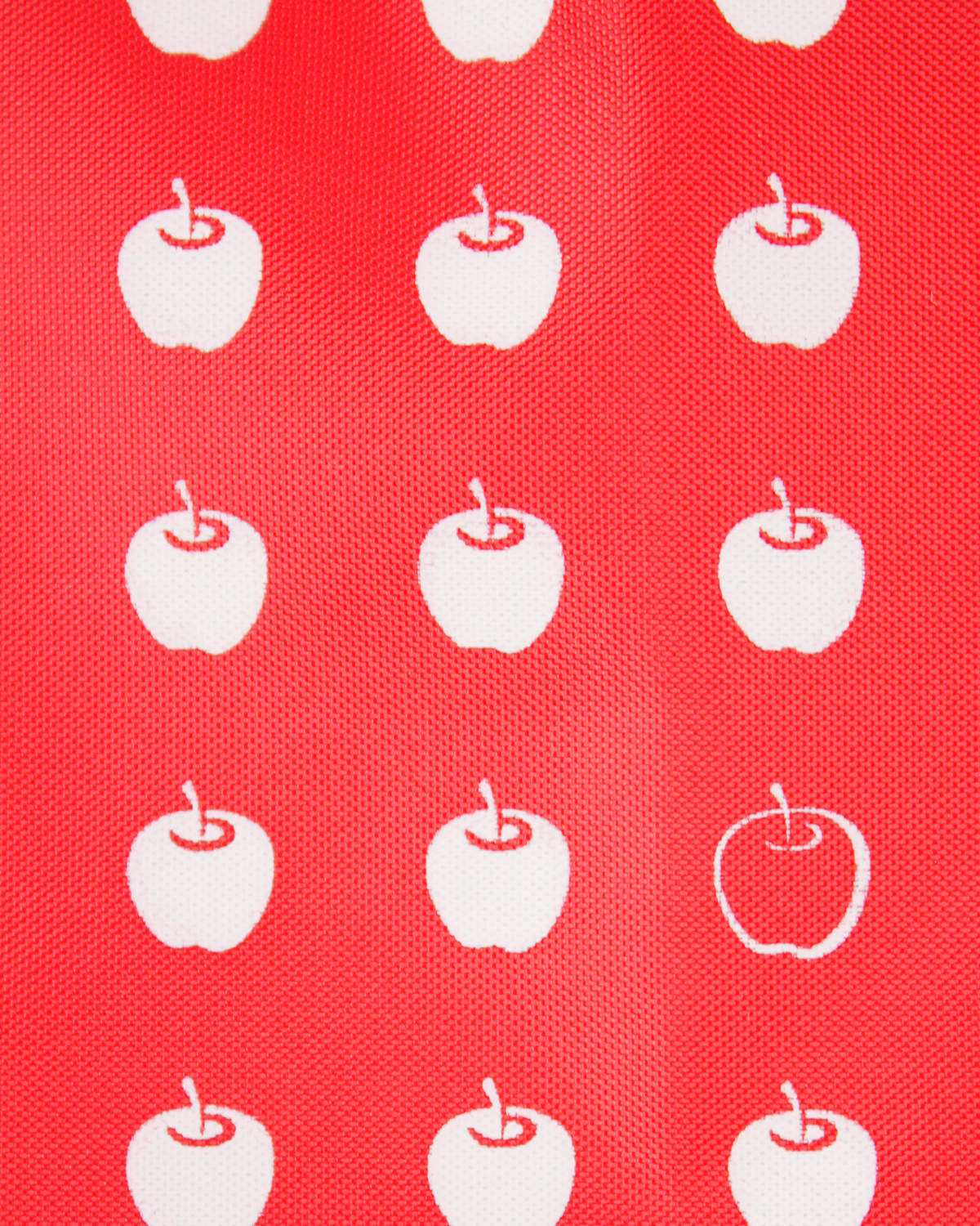 りんご柄を全面プリントしました。フルオーダーメイドのため、このような総柄印刷も可能です。また、フルカラー印刷や刺繍なども可能です。