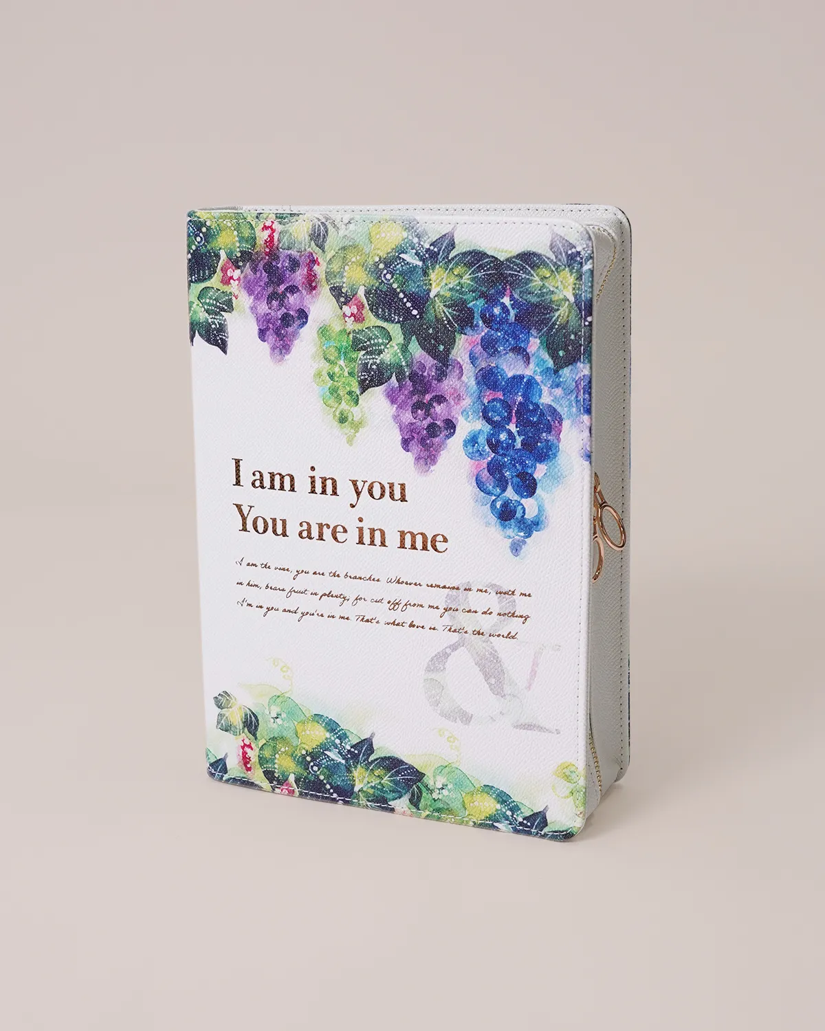 • 合皮マチありポーチ(本型)_大_指輪_葡萄_印刷