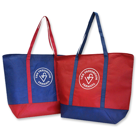 軽量かつ華やかで目を惹くメタリックカラーの不織布PPが使われ、オリジナリティと持ち運びやすさの両面を兼ね備えたトートバッグとなっています。青金、赤金、銀色の3色があり、サンプルも貸し出し可能です。