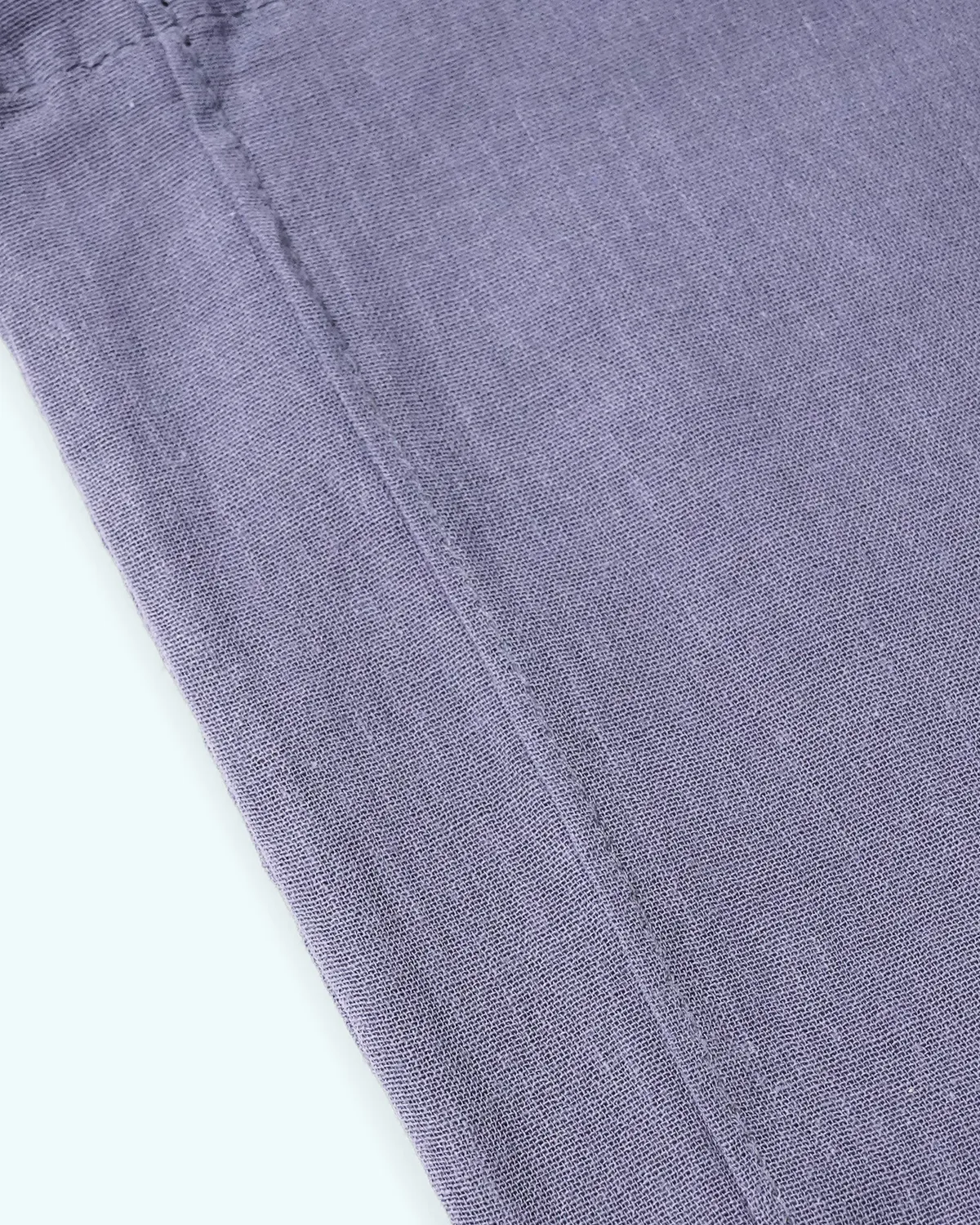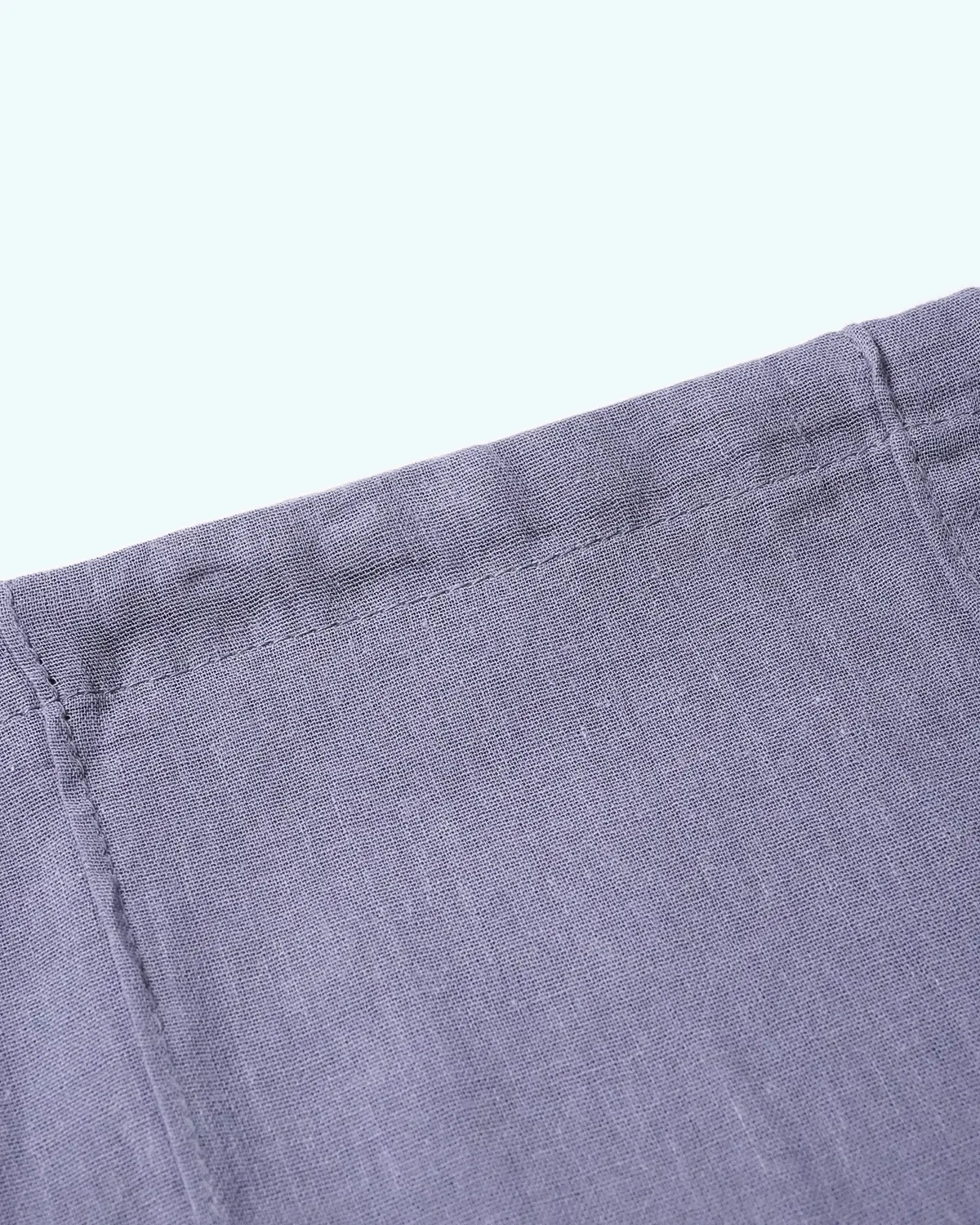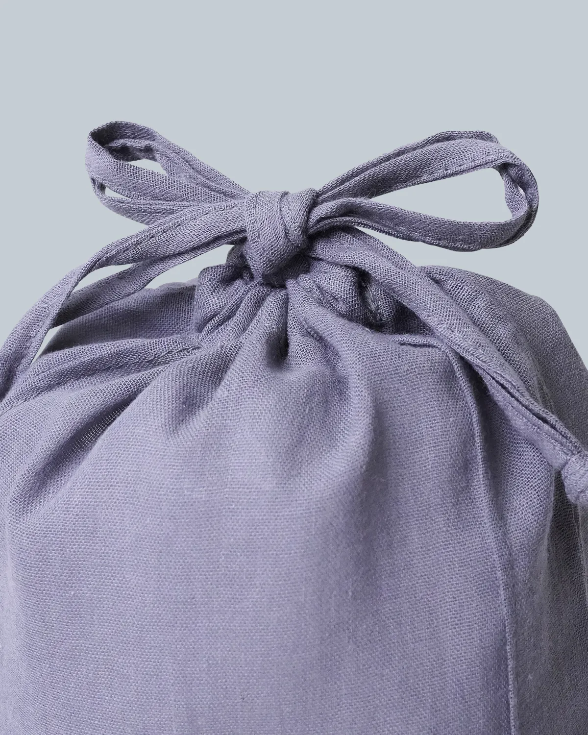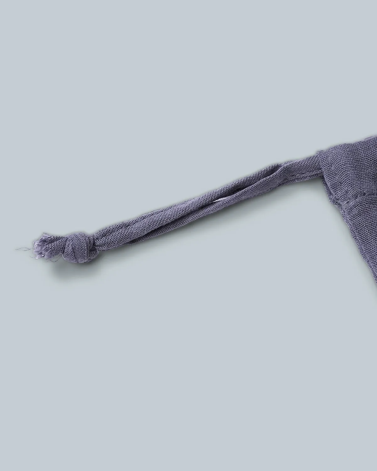 素材にはコットン3.5オンスを採用し、ガーゼに近い透け感のある柔らかな風合いです。紐には共生地の平紐を使用し、シンプルで統一感のあるデザインに仕上げました。